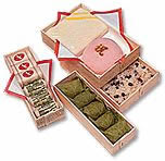 よろこびの形紅白餅、四角の形は土佐特有のふらふのぼりを型どったものといわれています。 |